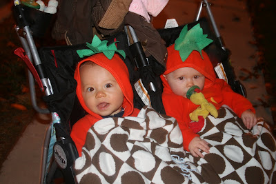 The babies wore some pumpkin suits we had from when the boys were tiny. Good thing they were warm because it was C-O-L-D outside!!